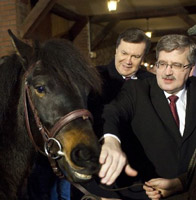 Huculs for the Ukrainian President On February 4th, at the Łazienki Park stables, Polish President Bronisław Komorowski surprised Ukrainian head of state Viktor Yanukovych with a valuable gift – two Hucul ponies with a Polish pedigree. Rochacz and Laguna are horses especially selected from a Polish breed to be a good addition to and enrich the Ukrainian breed and to bring about a closer cooperation of Hucul breeders from Poland and Ukraine. For centuries, the Hucul pony has not only enabled communication between the inhabitants of the whole Carpathian Mountains region, but has also played an important role in integrating the Lemkos, Boykos, Hutsuls and the Pogórzanie. Today, Hucul ponies, due to their gentle disposition, are often recommended for therapeutic work with ailing children. . |